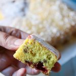 En mjuk saffranskaka med lingon som du kan toppa med glasyr eller bara sikta florsocker över. Vad väljer du? Jag har svårt att välja så jag delar kakan i två, halvan får florsocker på och halvan får glasyr. Smart va? Då gör du bara halva mängden glasyr men använd fortfarande en äggula. Och imorgon kör jag en LIVEBAKNING på Instagram och det kommer bli en twist på denna. Missa inte!